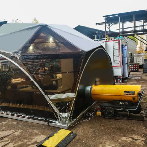 Pri naši tehnologiji izolacije uporabljamo kombinacijo dvoslojnega PVC platna in notranjega izolacijskega sloja, ki zadržuje toploto v notranjosti in preprečuje prodor hladnega zraka. Celoten šotor je hermetično zatesnjen, prezračevanje pa je rešeno z nadzorovanimi zračnimi tokovi, kar omogoča kroženje svežega zraka brez toplotnih izgub.