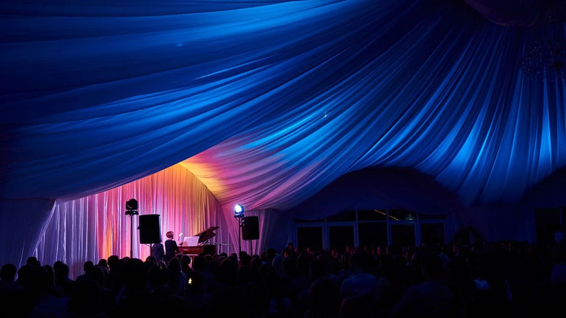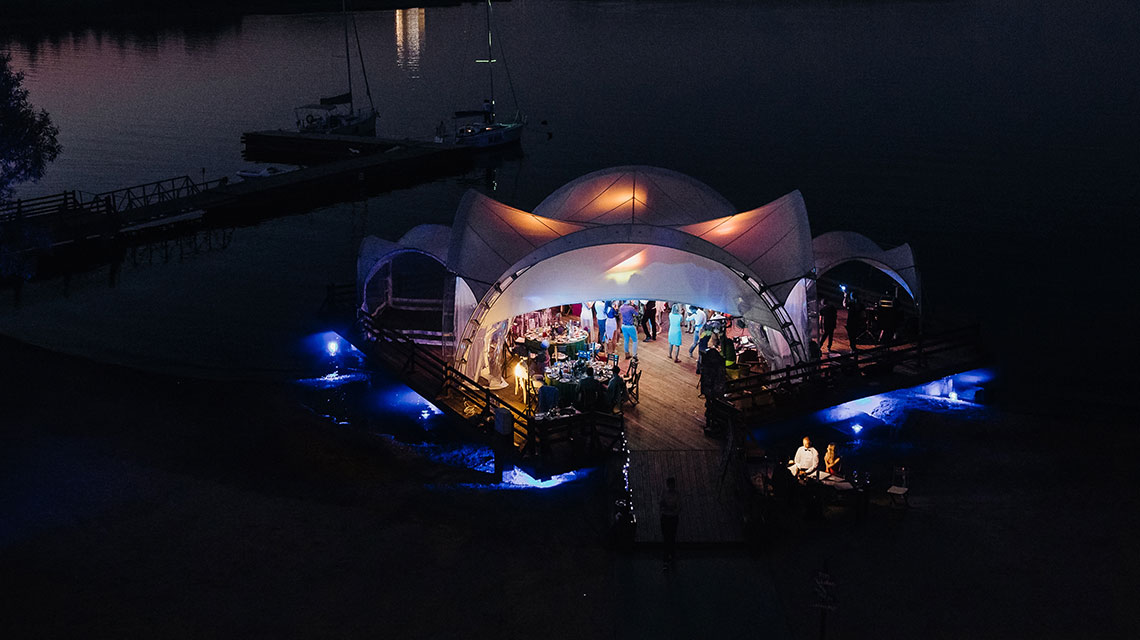 Da bi ustvarili nepozabno vzdušje dogodka in slovesnost trenutka, predlagamo, da paviljon opremite s posebno scensko razsvetljavo.