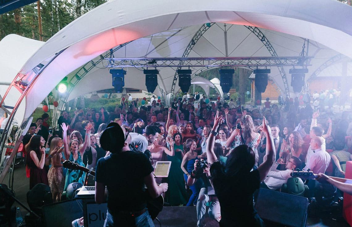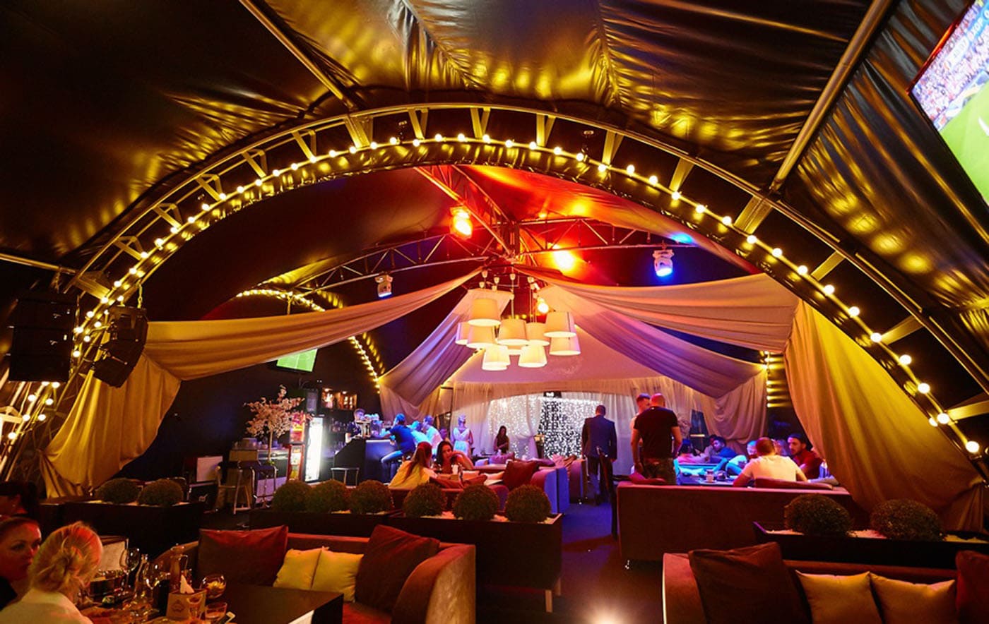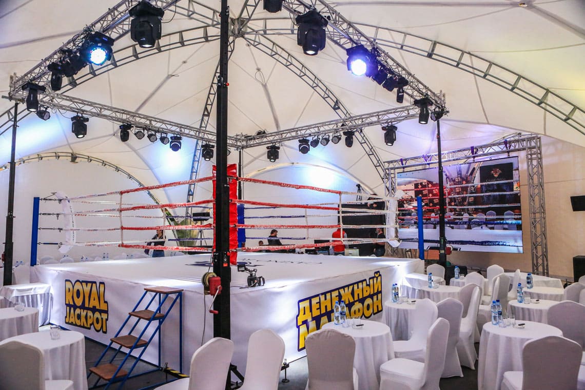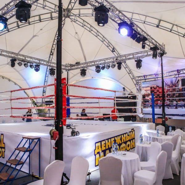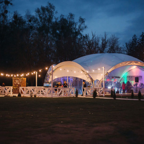Osvetlitev znotraj paviljona je funkcionalen in estetsko pomemben del projekta. Z uporabo različnih metod in vrst osvetlitve lahko uresničite zahtevano zasnovo paviljona, pa tudi dodate vizualne učinke, ki omogočajo zoniranje prostora in poudarjanje formata dogodka.