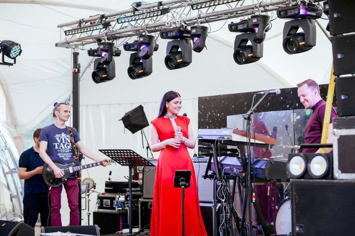 Obrobne luči, usmerjene proti nastopajočemu v središču dvorane, barvni reflektorji za gostitelja vesele zabave, zadnja osvetlitev za glasbenike, ki spremljajo praznik – naši strokovnjaki so pripravljeni ponuditi vse vrste odrske razsvetljave in narediti vaš dogodek svetel in nepozaben.