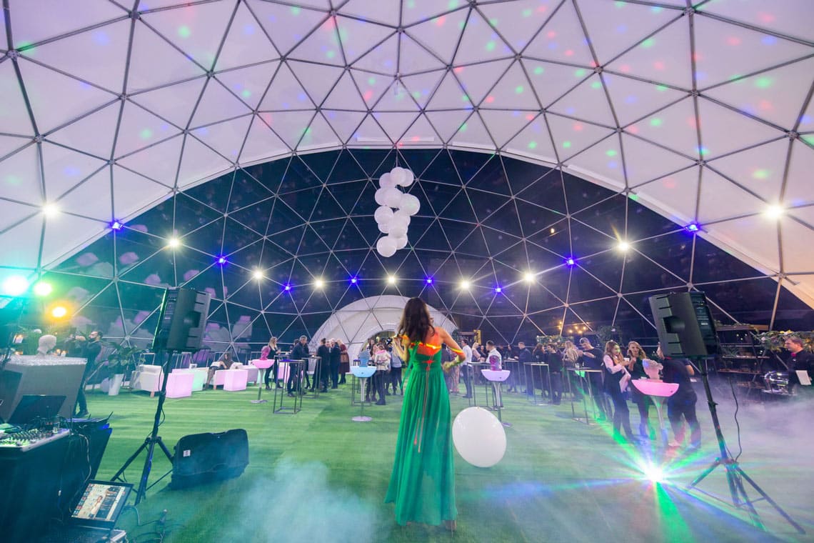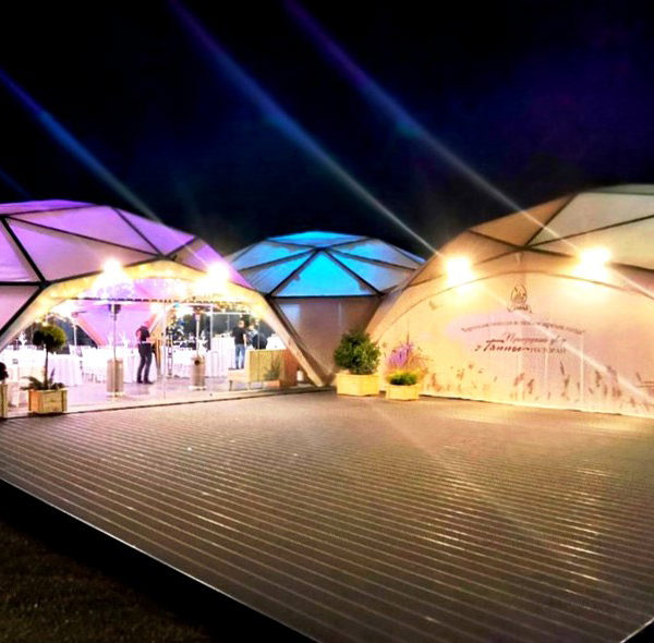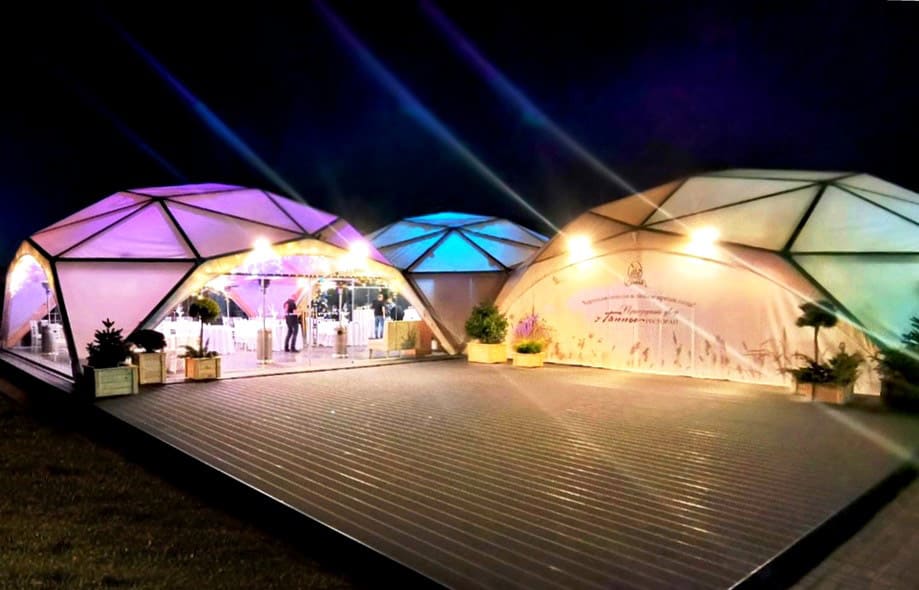 Pravilno nameščena zunanja razsvetljava omogoča ustvarjanje edinstvenega vzdušja dogodka. Na primer, barvna osvetlitev kupole paviljona med poroko bo služila kot ozadje za čudovite fotografije, razstavni paviljon, pobarvan v barvah znamke s pomočjo luči, pa bo pritegnil več pozornosti obiskovalcev.