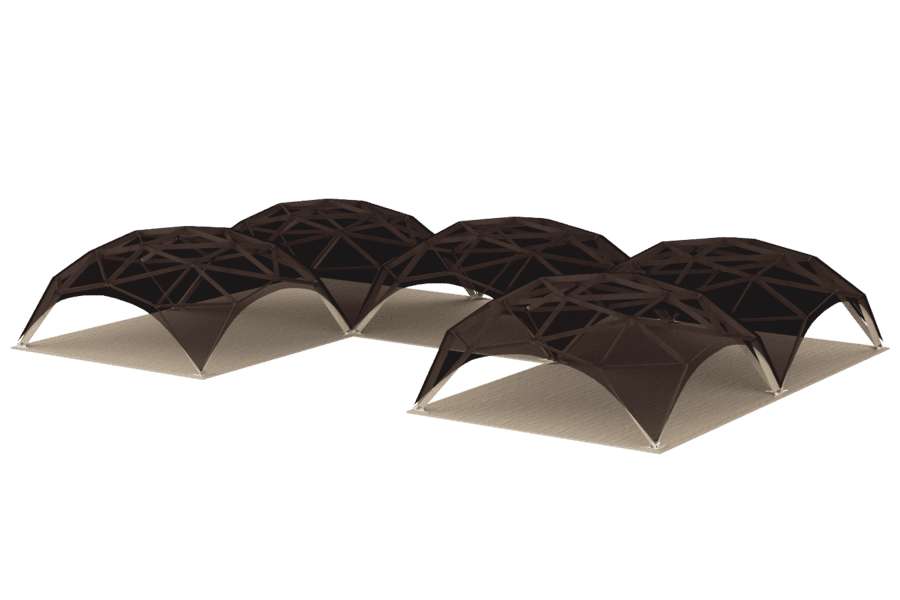 Lesene šotore lahko med seboj povežemo v figure poljubnih oblik. Hkrati so lahko šotori s štirimi kupolami različnih velikosti in povezani med seboj. Skupna površina visečih konstrukcij lahko doseže več sto kvadratnih metrov. Hkrati ni zaželeno, da bi strukture uredili v obliki kvadrata, saj lahko nastane prostor za kopičenje vlage.