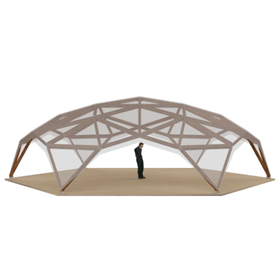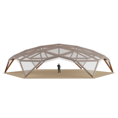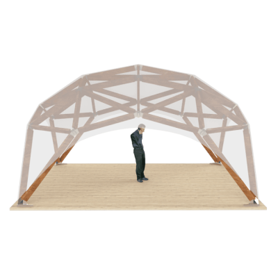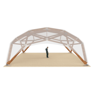 Doživite revolucionarni model Chalet – šotor z lesenim okvirjem, ki preoblikuje sodobno arhitekturo šotorov. Njegova trpežna kupolasta struktura, izdelana iz kakovostnega lepljenega lesa in povezovalnih elementov iz nerjavečega jekla, zagotavlja vzdržljivost in moč za uporabo vse leto. Z osvežujočim ekološkim stilom in odprtim notranjim prostorom brez vmesnih podpor, Chalet maksimizira učinkovitost in ponuja neskončne možnosti za ustvarjanje očarljivih prostorov.