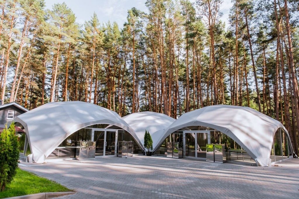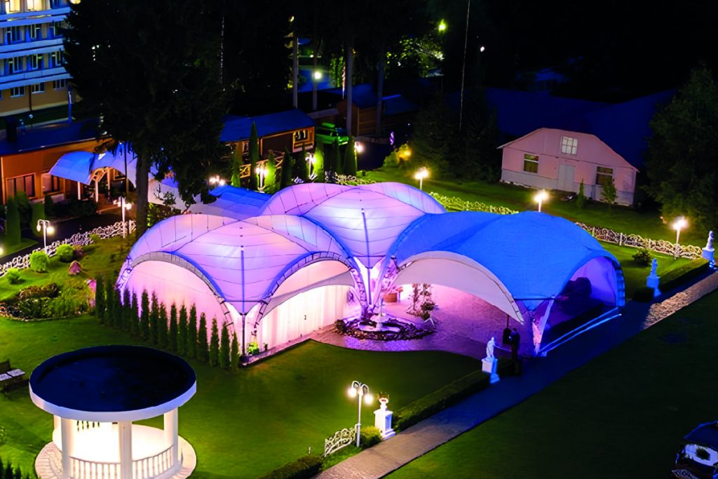 Model šotora Membrane ponuja individualen in nekonvencionalen dizajn, ki pritegne pozornost. Njegova kupolasta oblika in sodoben stil navdušujeta obiskovalce. S trdnim jeklenim okvirjem in visokotrdnostnim materialom zagotavlja stabilnost in zaščito pred vremenskimi vplivi. Membrane je primerna za različna okolja, od prostorov za sprostitev do prizorišč zabav, kavarn in športnih paviljonov. Predstavlja izjemno obrtništvo, vzdržljivost in očarljivo estetiko, ki naredi izjavo, ki se odziva na vaše občinstvo.